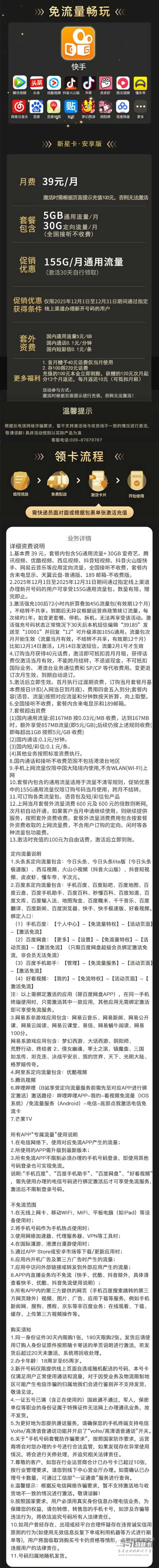 电信湖南卡 39元155G通用+30G定向 【自主激活】只发湖南