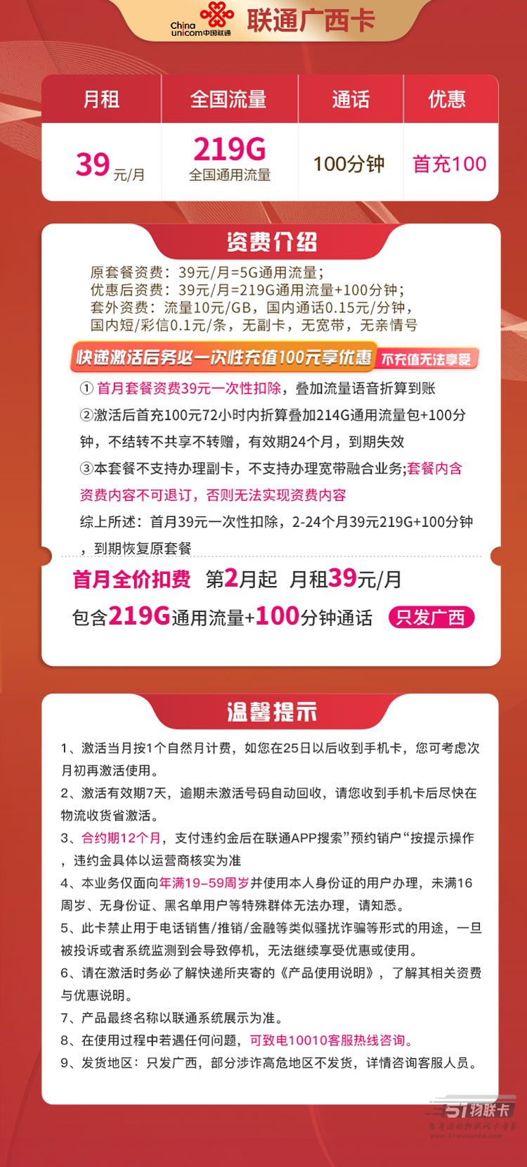 注意事项:以下问题会导致运营商发货不成功,客户收不到流量卡,请大家一定要注意: 1.身份证号码错误(姓名身份证号码不符,号码输入有误)。 2.请大家一定要认真看阅不发货地区(在不发货地区内的用户无法申请该套餐,请选择其它可选套餐)。 3.证件号码购买同一销售品超过数量(同一身份证只能申领一种套餐卡,不能重复申领相同套餐的卡)。 4.地址不详细(具体要详细的街道)。5,用户鉴权涉诈和黑名单校验不通过。6,开卡失败:国政通身份校验不通过。