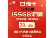 甘肃流量卡推荐:甘肃29元155G套餐详情介绍