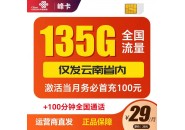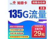 联通如意卡:29月租+135G通用流量+100分钟通话