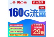 联通天仁卡,联通29元160G全通用流量+100分钟通话时长