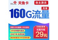 联通流量卡29元套餐,160G流量+100分钟通话,联通天鱼套餐详情介绍!