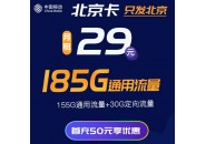 北京移动流量卡推荐,29元185G北京专属流量卡!