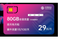 移动29元80g流量卡,移动青山卡流量卡免费申请