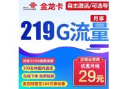 联通金龙卡 29元包219G通用流量+100分钟通话【自主激活/可选号】