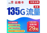 云南卡专用流量卡!联通云南卡:29元包135G通用流量+100分钟