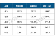 2024年第3季度手机市场份额排名:vivo第一、华为第二