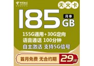 电信天火卡,电信29元185G+100分钟的长期大流量卡上架了!