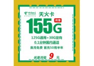 电信天火卡 9元月租155G全国流量+0.1/分钟通话 【首充50用半年】...
