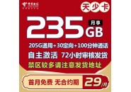 电信29元235g流量套餐,电信29元235g流量卡申请入口!