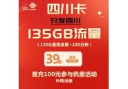 四川流量卡推荐:联通39元135G全国通用流量+100分钟,只发四川...