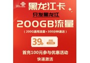 黑龙江联通卡:月租39元200G通用流量+300分钟,流量通话全拿下!
