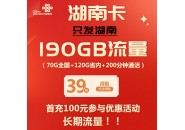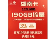 湖南联通流量卡套餐:39元190G流量+200分钟,只发湖南