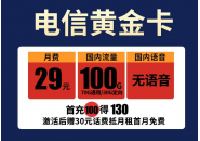 电信黄金卡29元套餐,29元100g永久纯流量卡