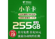 电信小羊卡:电信19元套餐255G全国流量+长期套餐...
