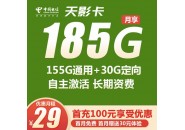 29元185G长期套餐,电信天影卡套餐详情介绍!