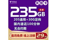 电信流量卡推荐:29元235G全国流量+100分钟通话,无合约!
